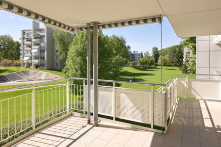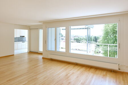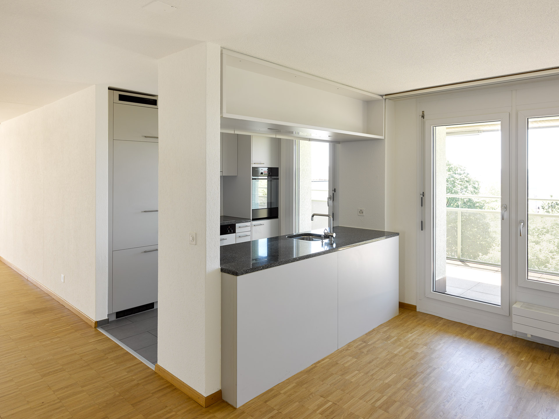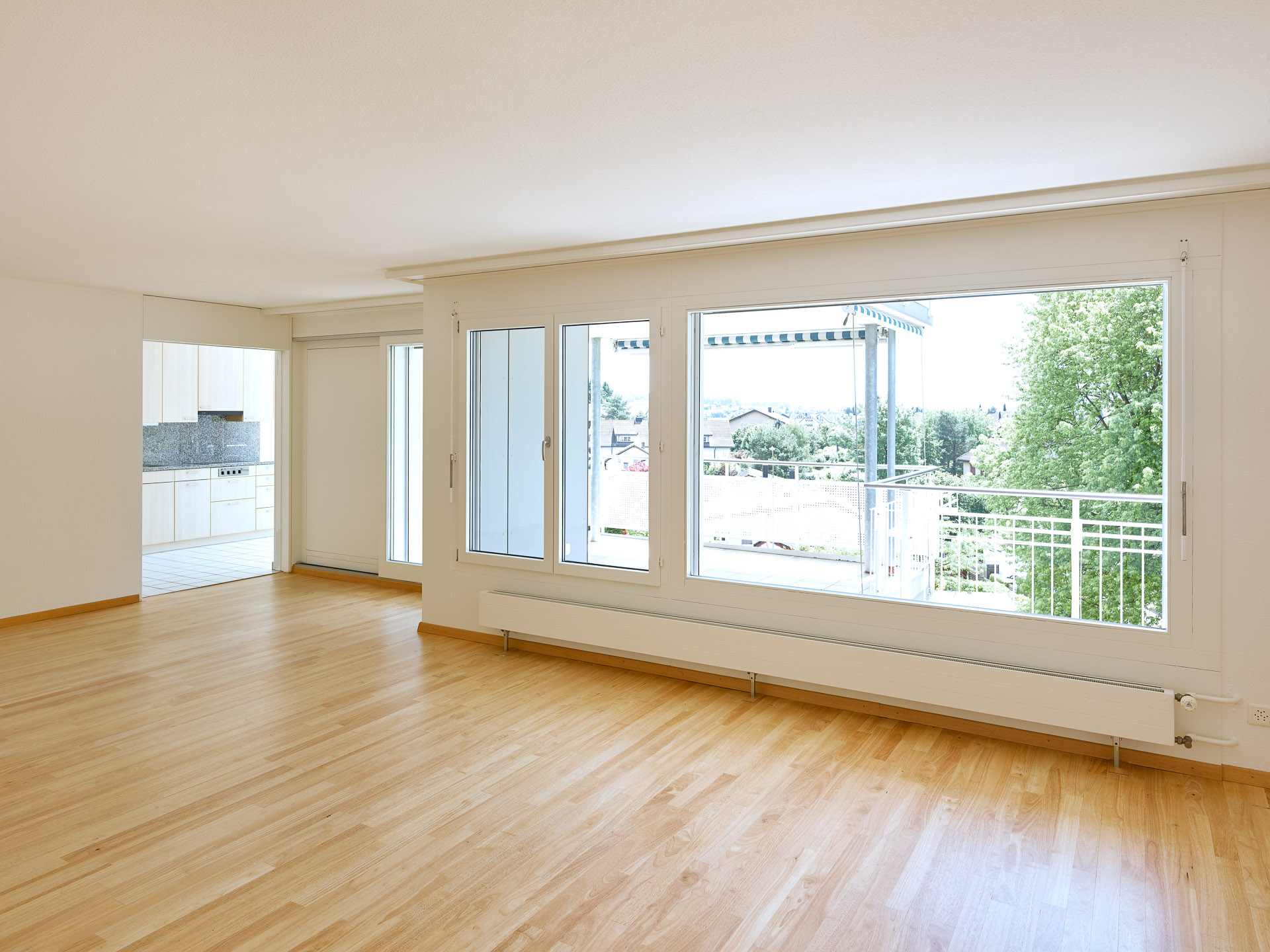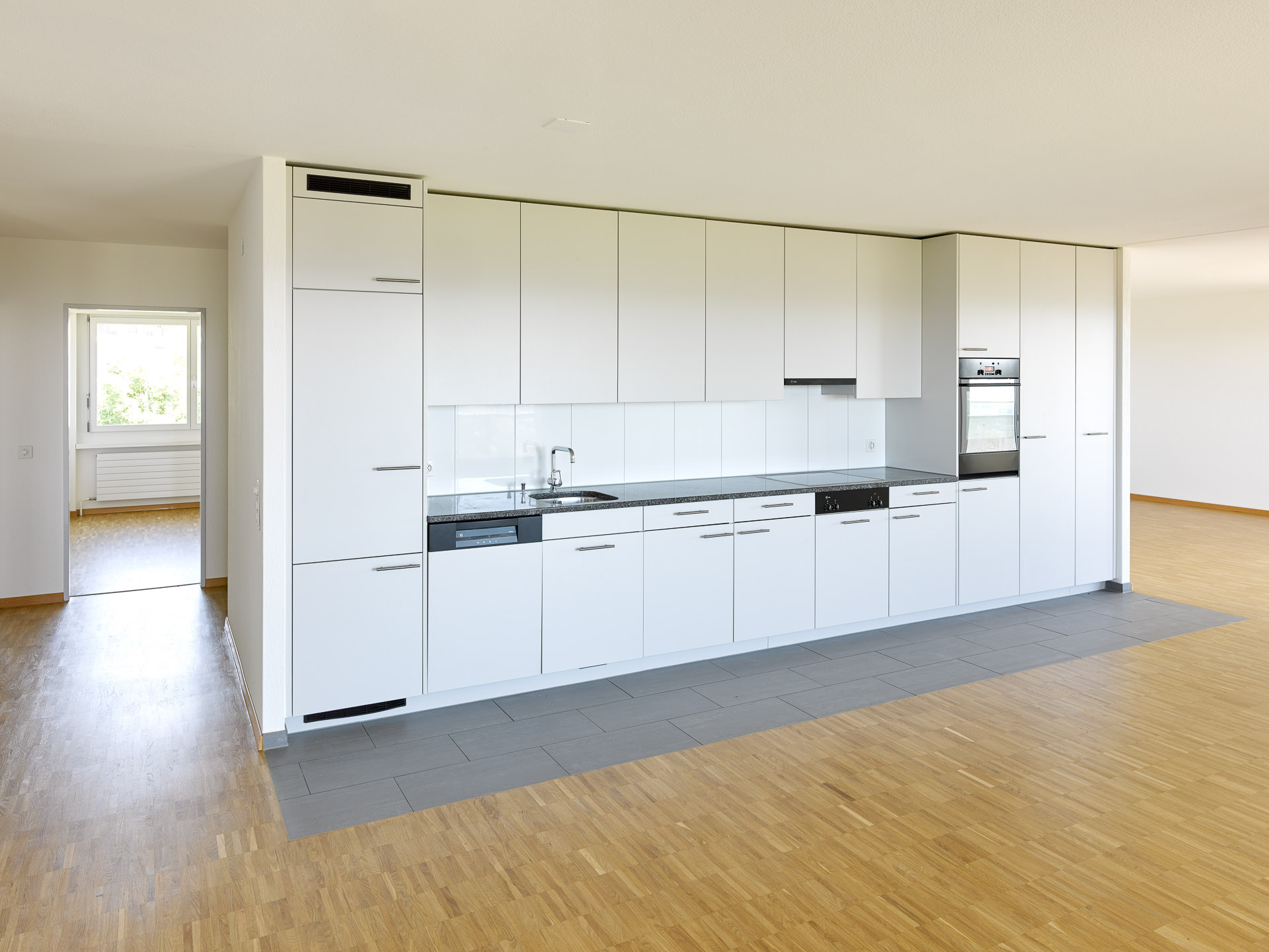 Grosszügige Grundrisse, viel Licht und zeitgemässer Wohnkomfort kennzeichnen die Wohnungen in der Siedlung Schachenfeld. Parkett- und Plattenböden in dezenten Farbtönen schaffen eine angenehme Atmosphäre. Die zum Teil offenen Küchen sind mit modernen Geräten ausgestattet. Auch die sanitären Anlagen der Nasszellen entsprechen den gängigen Standards. Die Attikawohnungen verfügen über ein Cheminée im Wohnzimmer, eine eigene Waschküche auf derselben Etage und eine grosse Terrasse. Zu jeder Wohnung gehört ein Kellerabteil, und jedem Haus gibt es einen Veloraum und genügend Waschküchen. Diese sind mit Waschmaschine, Tumbler und Secomat ausgestattet. 35 Bastel- oder Lagerräume – teilweise mit Tageslicht – ergänzen das Angebot.